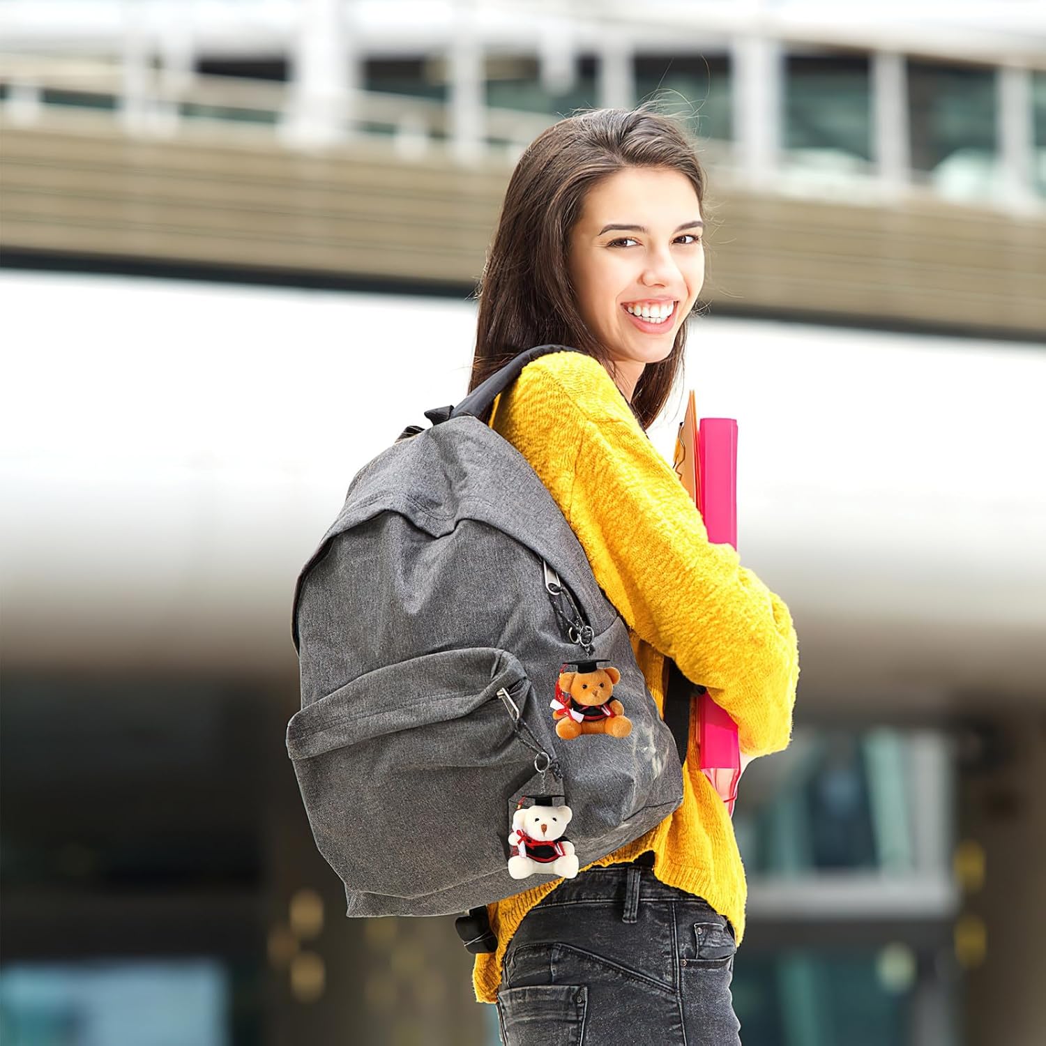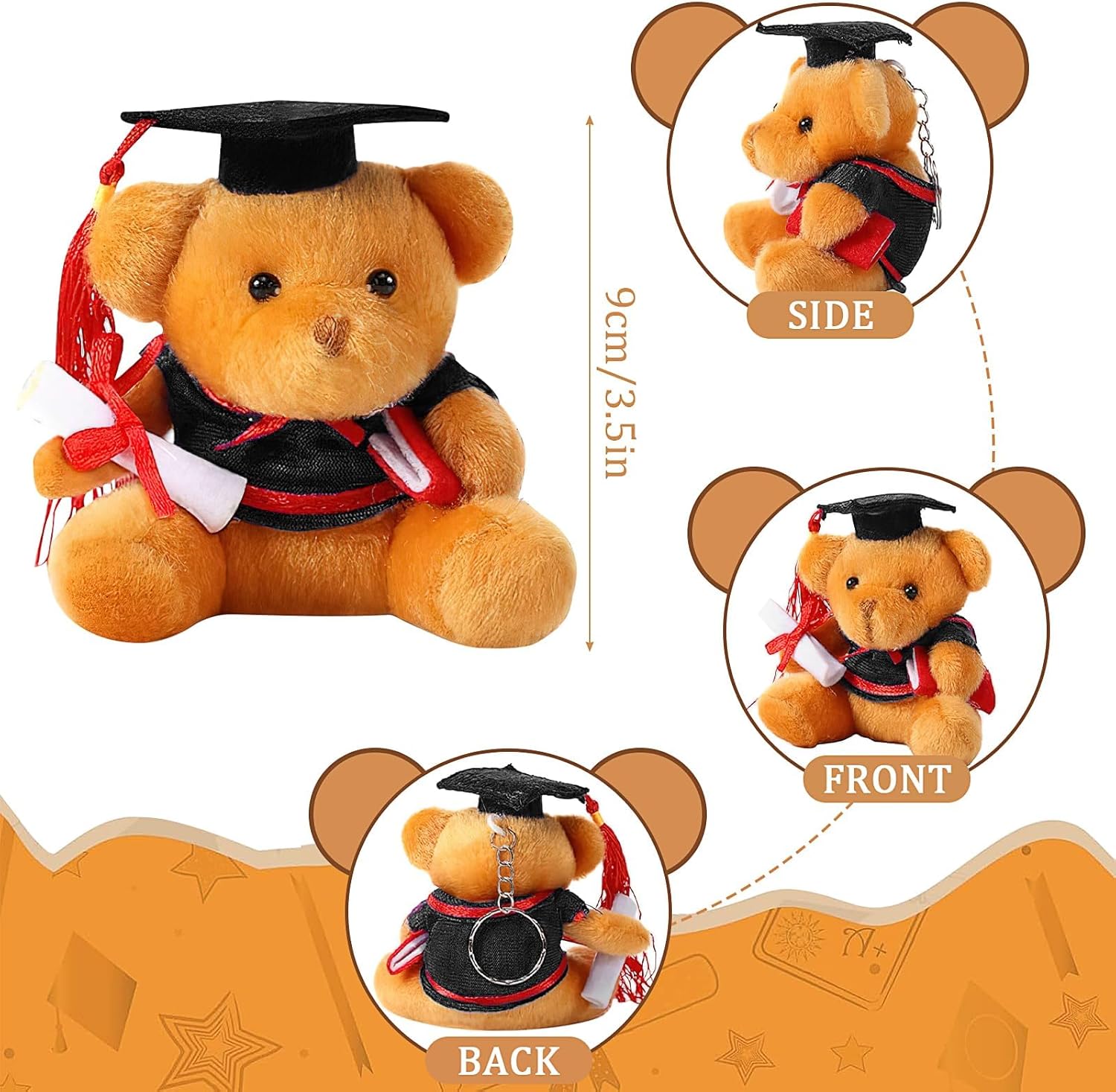 Slatki privjesak u obliku medvjedića s diplomom savršen je simbol uspjeha i lijepa uspomena na posebne trenutke poput diplome, mature ili završetka škole. Izrađen od mekanog pliša i kompaktne veličine od 8 cm, idealan je za ključeve, torbe ili kao mali poklon dragoj osobi.
